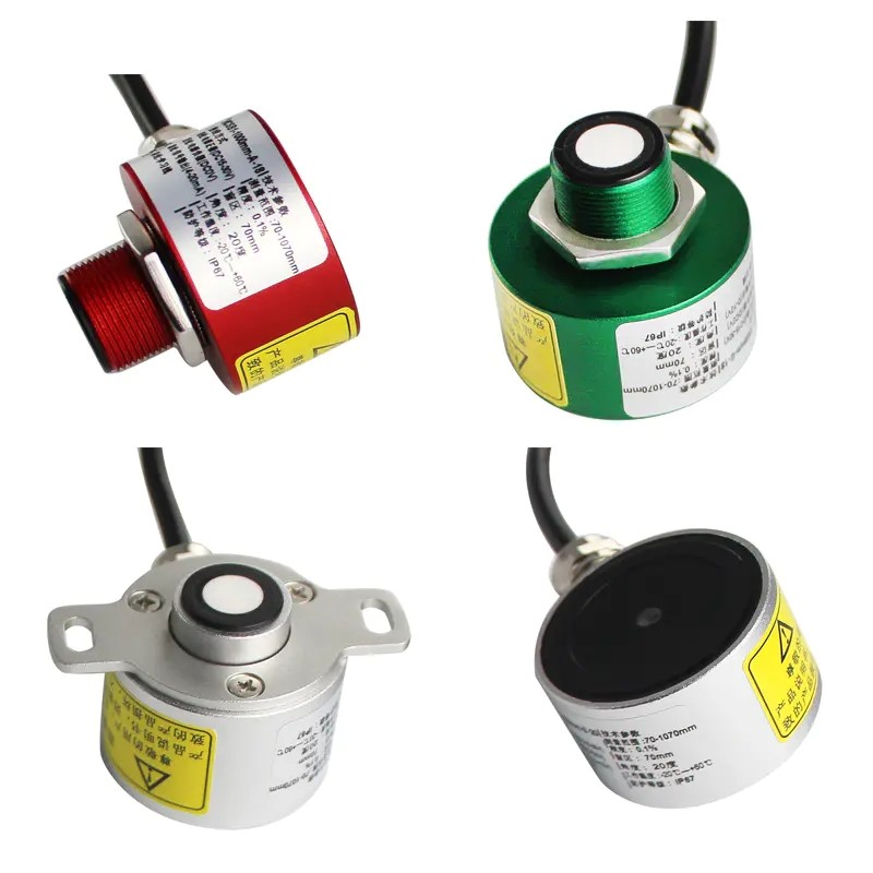 超聲波位移傳感器是一種振動頻率高于聲波的機械波,由換能晶片在電壓的激勵下發生振動,利用超聲波的特性研制而成的傳感器。微型超聲波位移傳感器具有頻率高、波長短、繞射現象小,特別是方向性好、能夠成為射線而定向傳播等特點。超聲波測距一般采用飛行時間法TOF(Time of Flight)。傳感器到障礙物的距離S=vt/2。根據超聲波發射和接收之間的飛行時間原理進行測量,利用聲波介質對被檢測物進行非接觸式無磨損的檢測,對透明或有色物體,金屬或非金屬物體,固體、液體、粉狀物質均能檢測。微型超聲波位移傳感器其檢測性能不受工件顏色、材質、透明度的影響,包括煙塵環境和雨天。可廣泛應用在物位(液位)監測,機器人防撞,各種超聲波接近開關,以及防盜報警等相關領域,工作可靠,安裝方便, 防水型,發射夾角較小,靈敏度高,方便與工業顯示儀表連接。