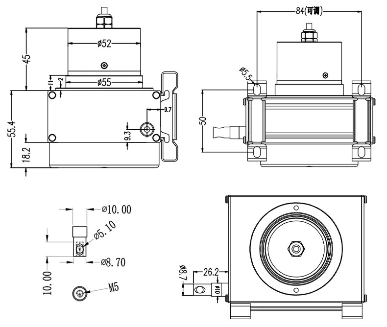 1、利用底部4個固定螺絲孔,依現場及機器安裝空間設施需要,直接安裝或另加保護或其他機械使用。