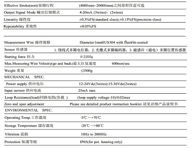 MPS-L拉線編碼器的參數(shù)說明: