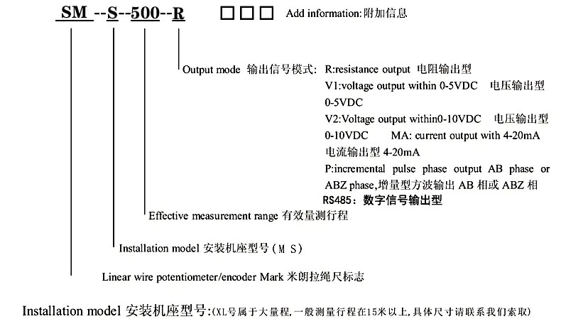 SM-M型拉繩位移傳感器選型指導:
