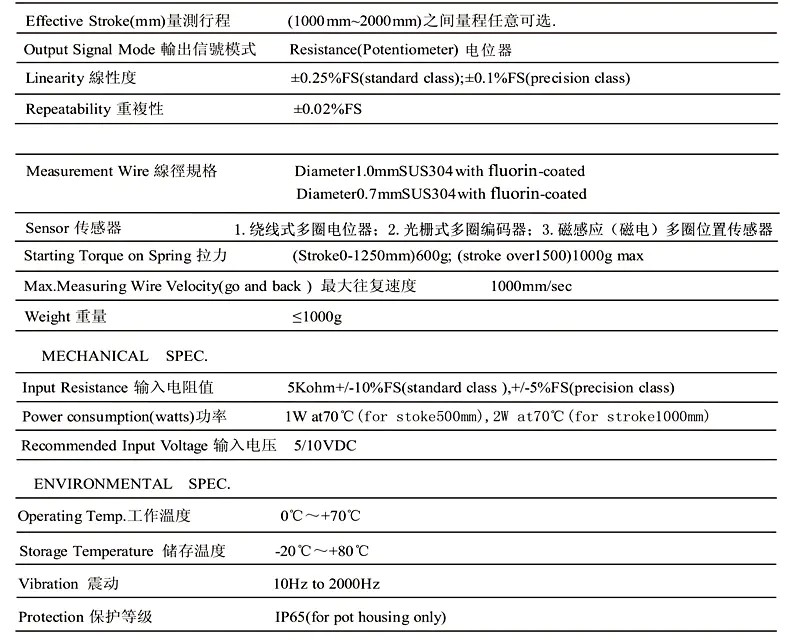 SM-M型拉繩位移傳感器的參數資料:
