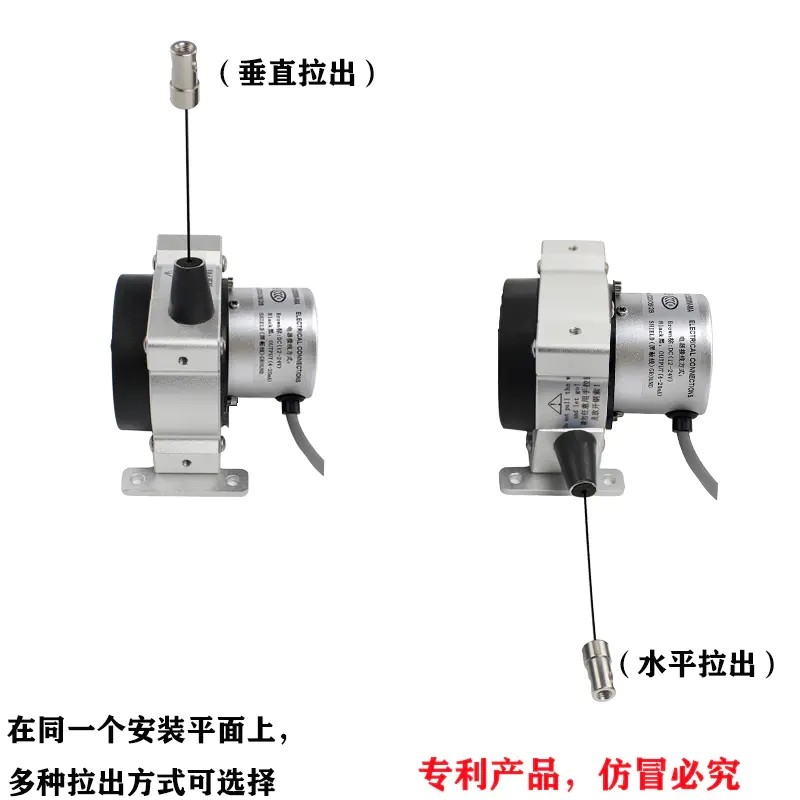 SM-S型拉線位移傳感器,又稱拉繩編碼器,拉繩尺,拉線尺,拉線編碼器,拉繩位移傳感器,是直線位移傳感器在結構上的精巧集成,充分結合了角度傳感器和直線位移傳感器的優點,成為一款結構緊湊、測量行程長、安裝空間尺寸小、具有高精度測量的優良傳感器。SM型拉線位移傳感器具有很大的選擇空間,行程從200mm至20000mm不等, 具有模擬電流信號mA:4-20mA,模擬電壓信號V1:0-5V,V2:0-10V,脈沖信號P:A、B、Z相數字輸出,數字信號RS485。滿足大行程、高精度各種信號需求。