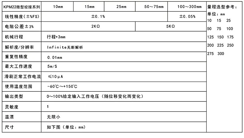 KPM22小型鉸接式位移傳感器的參數及安裝尺寸: