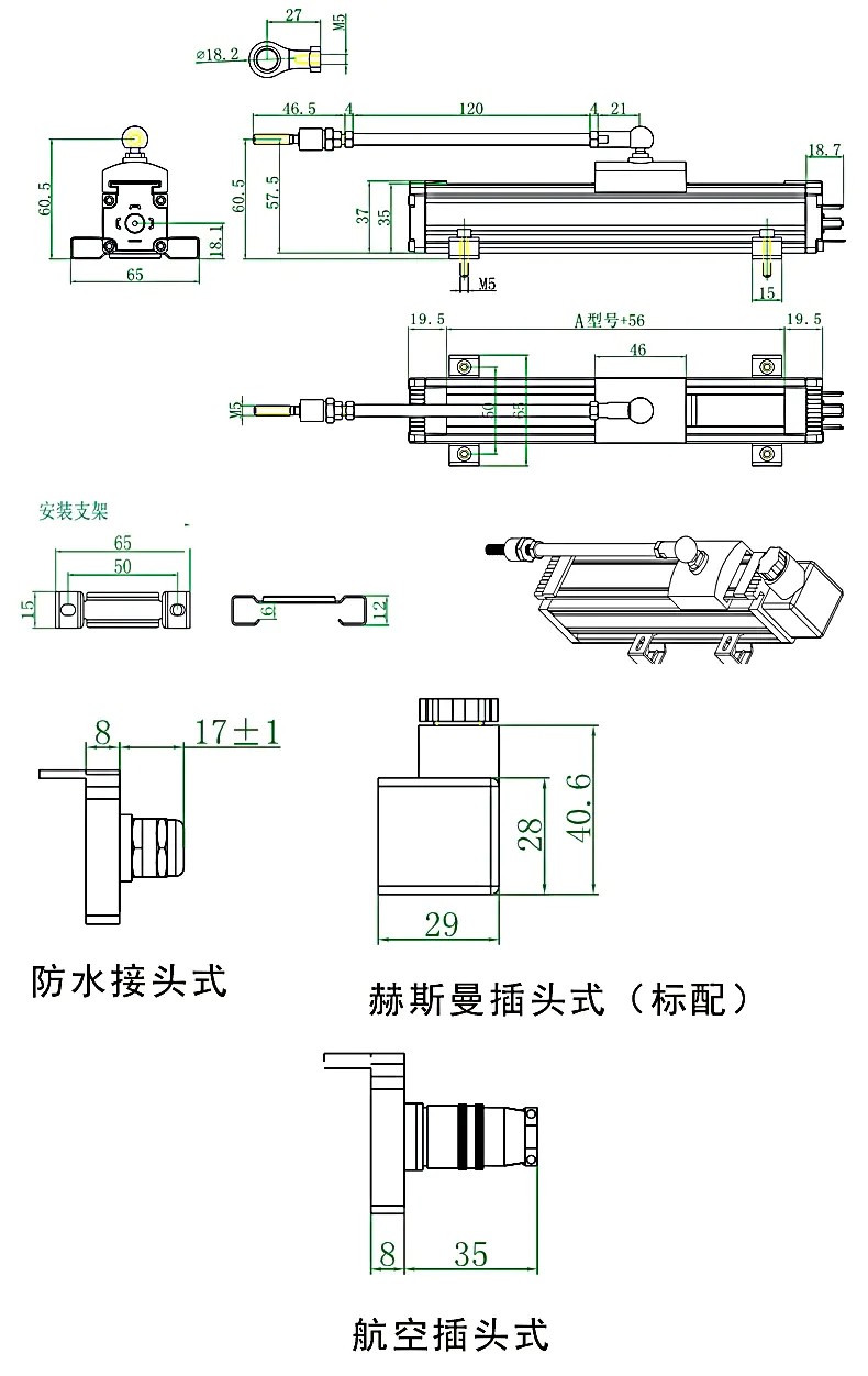KTF1滑塊式電子尺的參數(shù)及安裝尺寸: