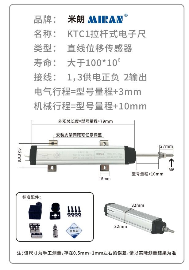 KTC1拉桿式直線位移傳感器的參數(shù)說明: