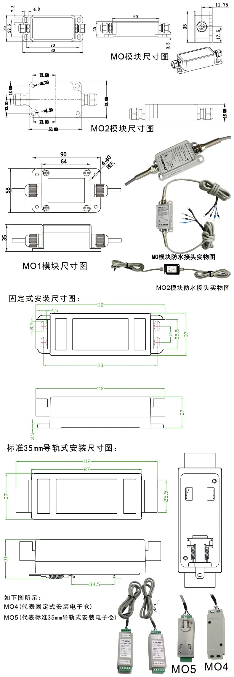 位移傳感器專用變送器安裝尺寸: