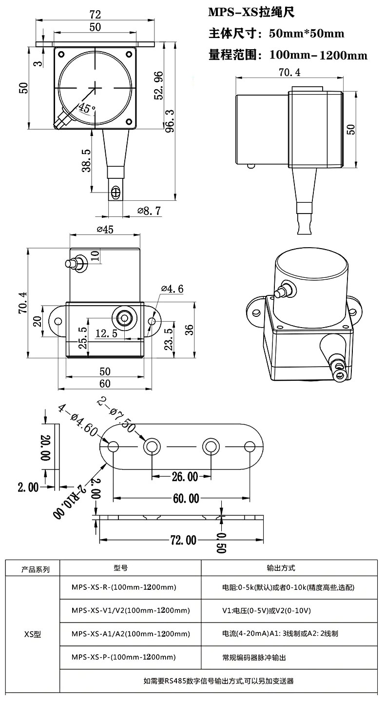 MPS-XS 拉繩編碼器拉繩尺選型指導: