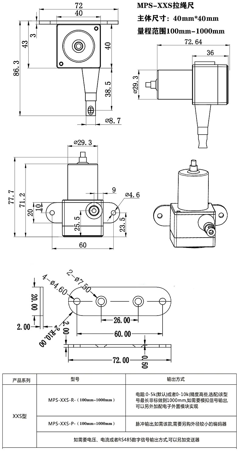 MPS-XXS拉線尺安裝尺寸: