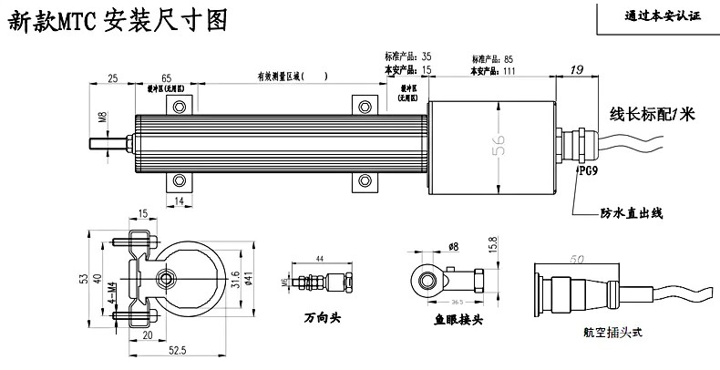 MTC本安型磁致伸縮位移傳感器安裝尺寸: