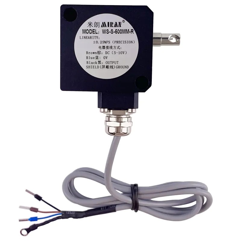 WS-S拉繩式位移傳感器,又稱拉繩尺,拉線尺,拉線式位移傳感器,拉繩位移傳感器,是直線位移傳感器在結構上的精巧集成,充分結合了角度傳感器和直線位移傳感器的優點,成為一款結構緊湊、測量行程長、安裝空間尺寸小、具有高精度測量的優良傳感器。WS-S拉繩式位移傳感器系列產品具有很大的選擇空間,行程從100mm至800mm不等, 具有模擬電流信號mA:4-20mA,模擬電壓信號V1:0-5V,V2:0-10V和RS485數字信號輸出。滿足大行程、高精度各種信號需求。