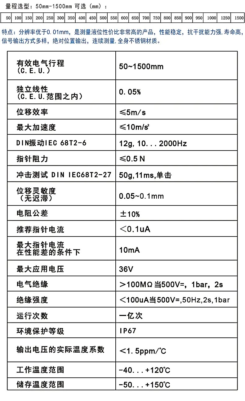 分辨率優于0.01mm,是測量液位性價比非常高的產品,性能穩定,抗干擾能力強,壽命高,