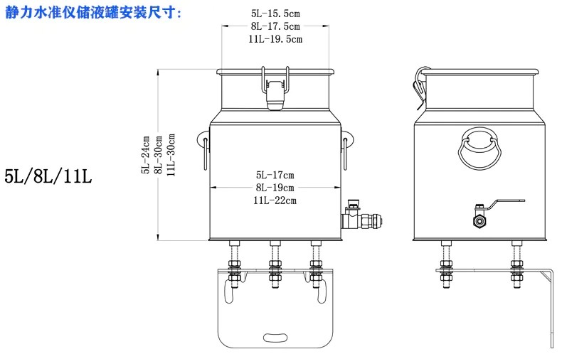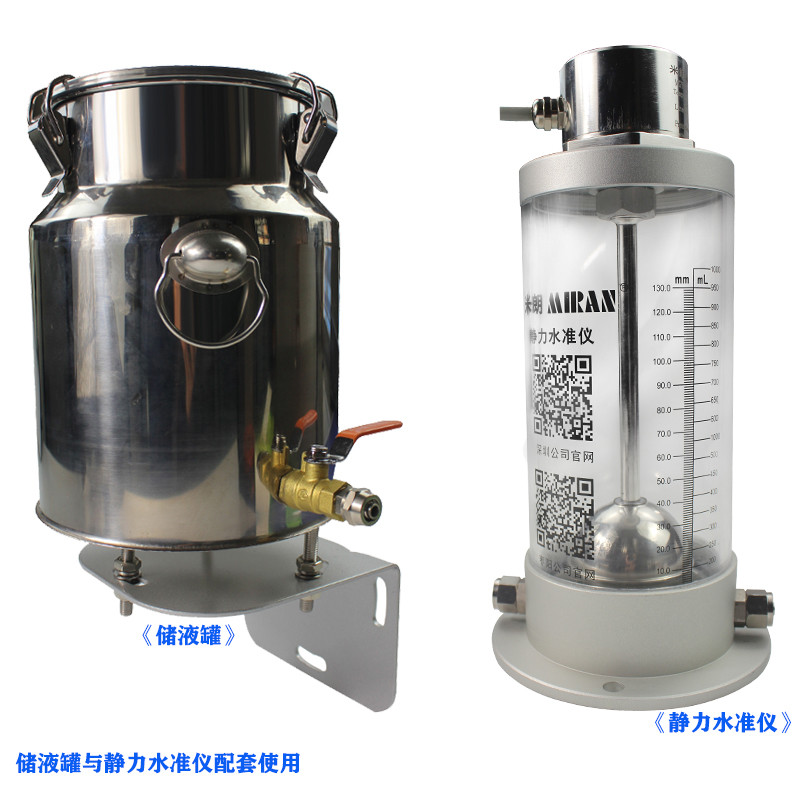 儲液罐需與磁致伸縮式靜力水準儀配套使用,儲液罐為201不銹鋼材質,美觀大方,容量5L、8L、11L可供選擇,也可接受非標定制。