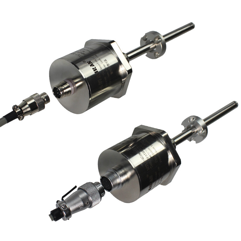磁致伸縮位移傳感器的原理是利用兩個不同磁場相交時產生一個應變脈沖信號,然后計算這個信號被探測所需的時間周期,從而換算出準確的位置。這兩個磁場一個來自磁環中的永磁鐵,另一個來自傳感器電子倉中的電子部件產生的激勵脈沖。激勵脈沖沿傳感器內用磁致伸縮材料制造的波導絲以聲速運行。當與磁環中的永磁場相交時,由于磁致伸縮現象,波導絲產生的機械振動形成一個應變脈沖。應變脈沖很快便被電子倉中的感測電路探測到。從產生激勵脈沖的一刻到應變脈沖被探測到總的時間乘以固定的聲速,我們便能準確的計算出磁鐵的位置變化。這個過程是連續不斷的,所以每當磁環位置改變時,新的位置會被迅速測量出來。由于輸出信號是真正的位置值,而不是比例的或需要再放大處理的信號,所以不存在信號漂移或變值的情況,更不必像其他傳感器那樣需要定期重標。