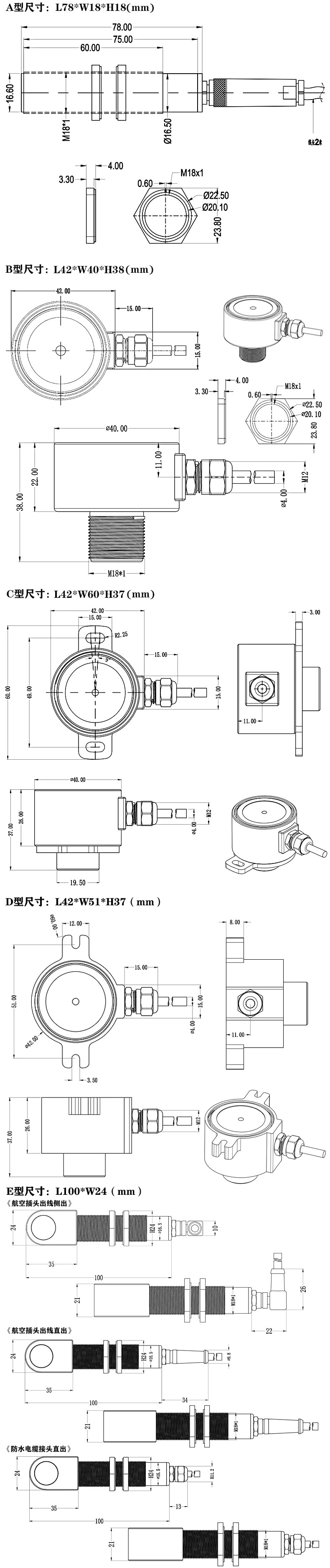 五、超聲波位移傳感器安裝尺寸