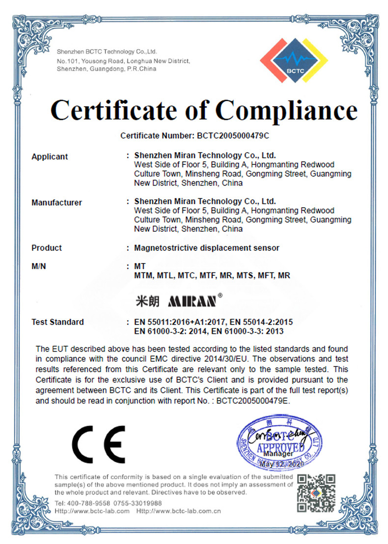 您的位置:主頁  > 產品展示  > 磁致伸縮位移/液位傳感器本安防爆型  > 磁致伸縮(位移/液位)系列證書  > 磁致伸縮位移/液位傳感器CE認證