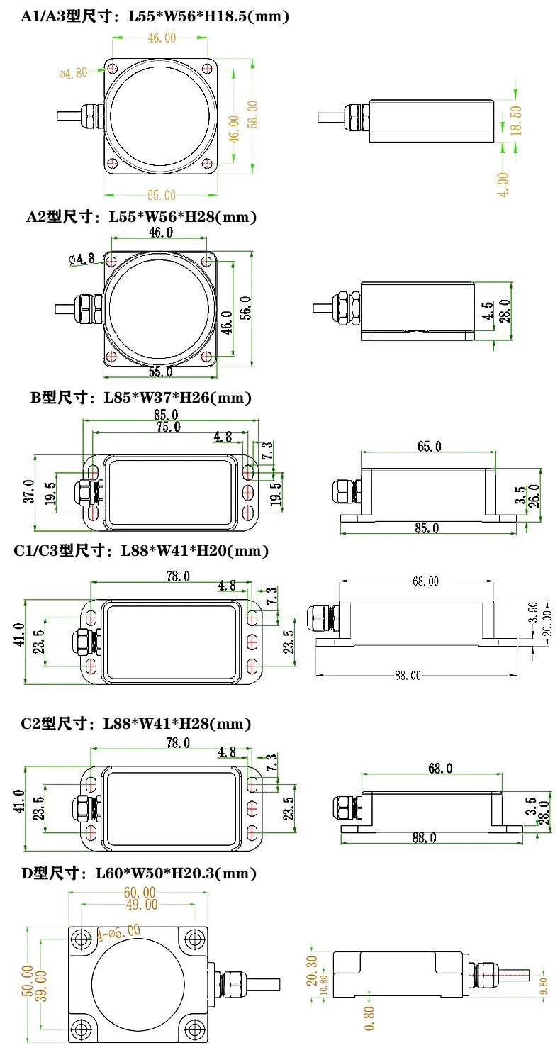 產品外殼采用鋅合金壓鑄成型,機械強度高,溫度膨脹系數小,密封性能高,安裝方便、使用簡單、體積小、抗外界電磁干擾、承受振動沖擊能力強,是測量測繪,高層建筑,公路橋梁,工業自動化,工程機械等行業傾角測量的推薦選擇。