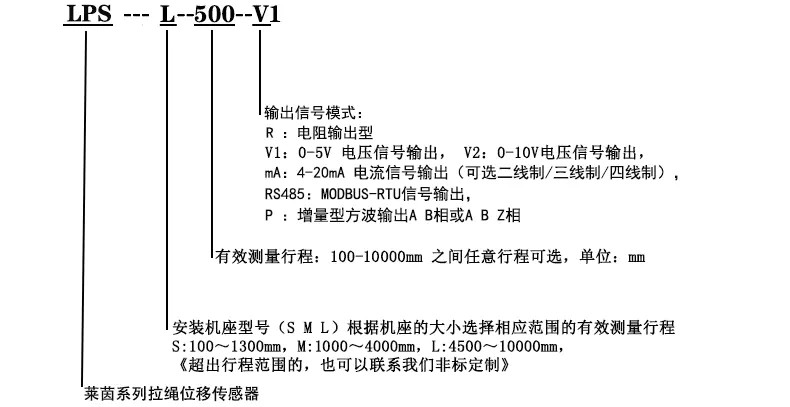 五、LPS-S拉線式位移傳感器選型指導: