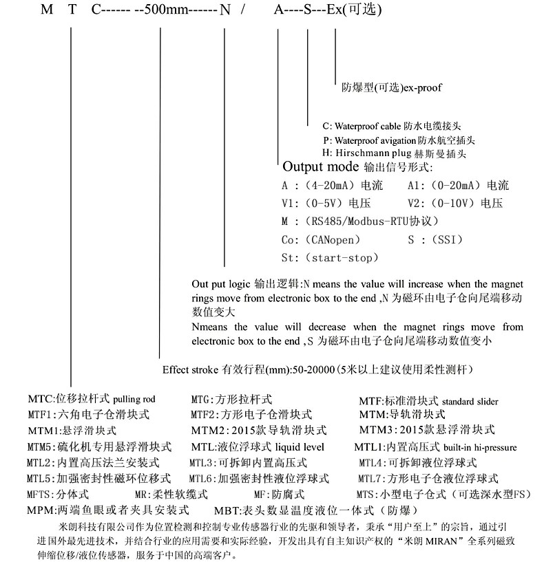 MTF1/MTF2滑塊式磁致伸縮位移傳感器選型指導(dǎo):