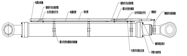 6,如安裝時(shí)閘門處于全開或全關(guān)狀態(tài),連接測量桿時(shí)可查看測量桿上的“滿量程標(biāo)記線”(全開安裝時(shí)查看)或“零點(diǎn)標(biāo)記線”(全關(guān)安裝時(shí)查看)是否在管口,標(biāo)記線可略進(jìn)入管內(nèi)(一般進(jìn)管內(nèi)20mm以內(nèi)即可,不可過多,以防行程不夠),但不可露出,如標(biāo)記線露出管口,應(yīng)調(diào)整測量桿或?qū)蛱坠埽蛊洳辉诠芸谥猓ㄔ诳臻g寬裕的前提下,調(diào)整測量桿連接抱箍zui簡單),此操作為防止全關(guān)時(shí)測量桿處于霍爾傳感器檢測盲區(qū)位置;如安裝時(shí)閘門不處于全開或全關(guān)狀態(tài),請按圖紙標(biāo)注位置安裝,導(dǎo)向套管與油缸安裝座對齊,見安裝圖,抱箍位置可根據(jù)情況適當(dāng)調(diào)整;