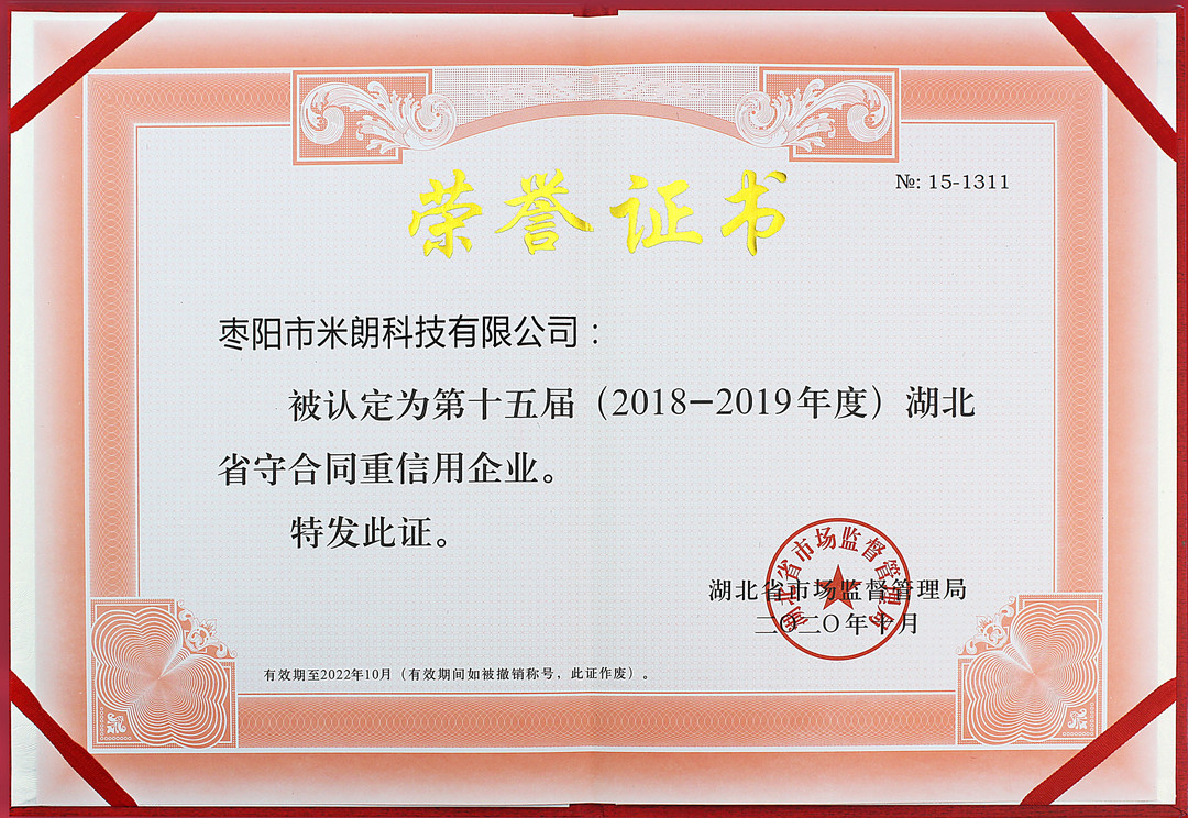 守合同重信用榮譽證書(湖北省市場監(jiān)督管理局)