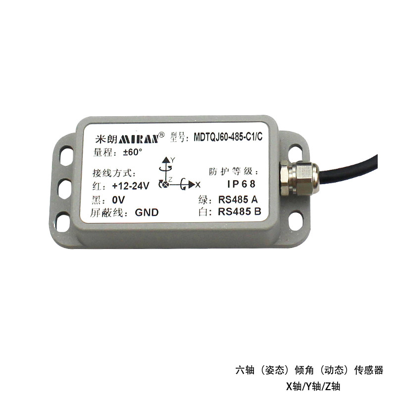 六軸(姿態)傾角(動態)傳感器內部使用數字型MEMS動態芯片,可測量運動載體的姿態參數(橫滾、俯仰以及方位角),適用于運動或振動狀態下的傾角測量。產品內置加速度和陀螺傳感器,集成了卡爾漫濾波算法,從而可測量運動或振動狀態下的載體實時運動數據。產品RS485/232/TTL等信號輸出模式可選,擴展性強。