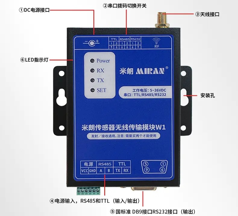 一、米朗傳感器無線傳輸模塊W1/無線數傳電臺概述: