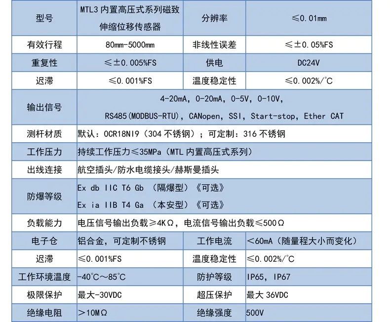 磁致伸縮傳感器為非接觸式,永不磨損。具有高分辨率、高精度、高穩(wěn)定性、高可靠性、響應時間快、工作壽命長等優(yōu)點。傳感器不用重新標定,也不用定期維護。